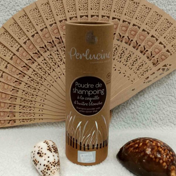 - Poudre de shampoing à la coquille d’huitre blanche pour tout type de cheveux “Perlucine”